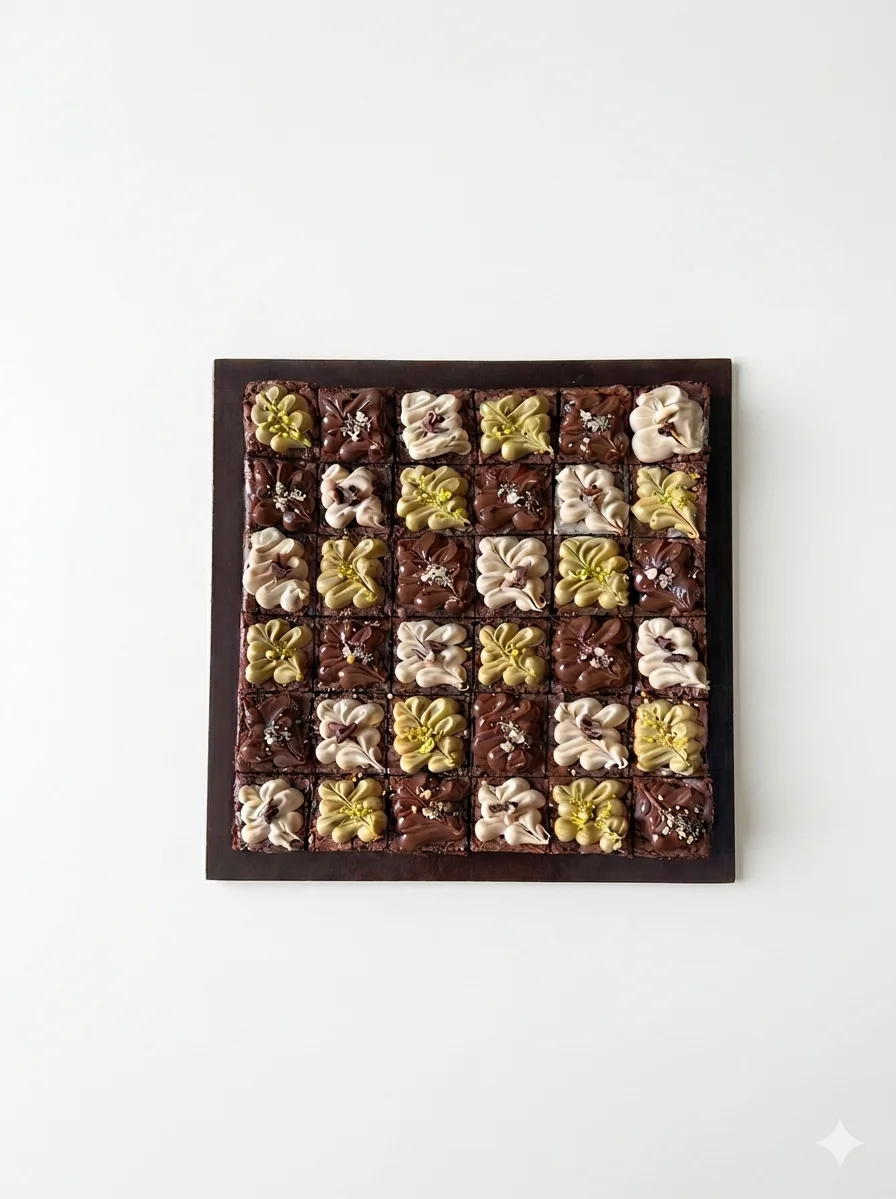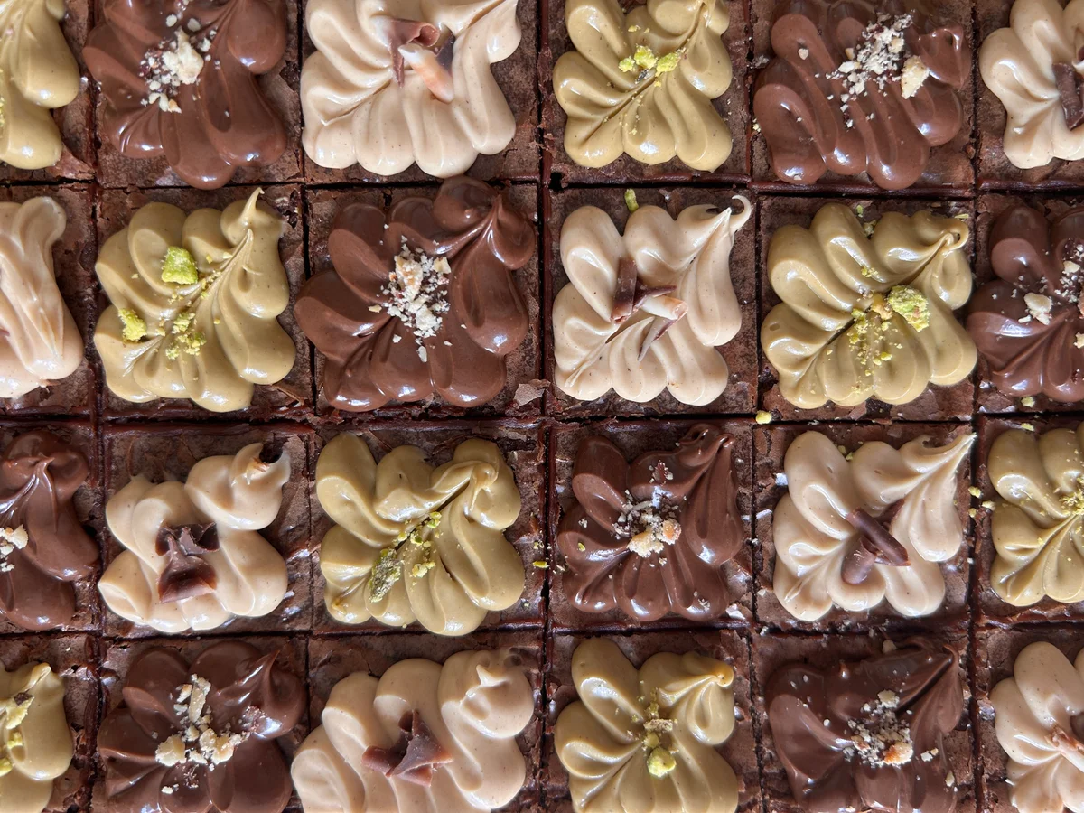 Nuestro brownie húmedo, cortado en trocitos cubierto con crema de pistacho, nutella y kinder. Ideal para compartir con amig@s, familia, cumpleaños o darte un capricho. Incluye tarjeta personalizable con tu mensaje para que sorprendas de verdad. Entrega a domicilio o recogida en tienda aliada (IL PIZZO, Calle Pérez Galdós 10, Santa Cruz de Tenerife). Tamaño: 22cm Porciones: 36 mini porciones.
