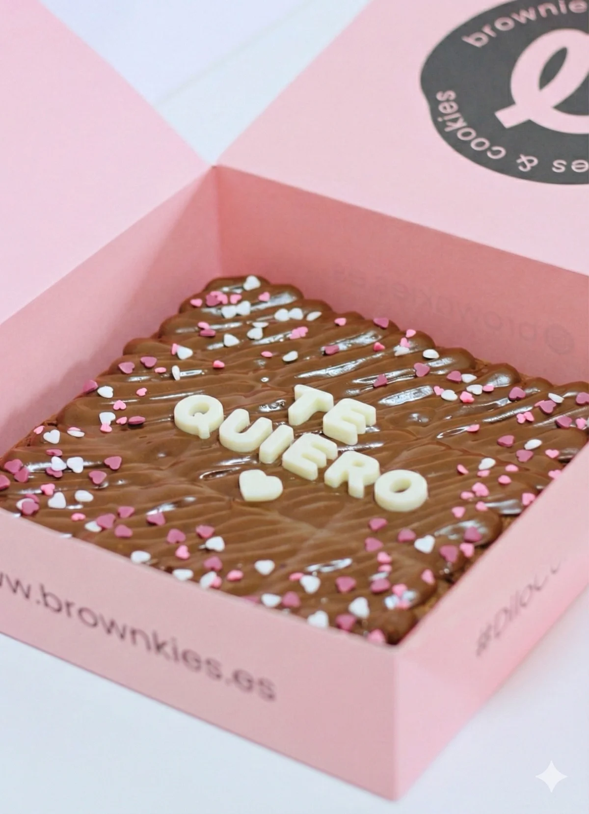 Brownie extra húmedo, cubierto con nutella , corazones comestibles y letras de chocolate con la palabra TE QUIERO. Ideal para los más románticos. Incluye tarjeta personalizable con tu mensaje para que sorprendas de verdad. Entrega a domicilio o recogida en tienda aliada (IL PIZZO, Calle Pérez Galdós 10, Santa Cruz de Tenerife). Tamaño 22cm.